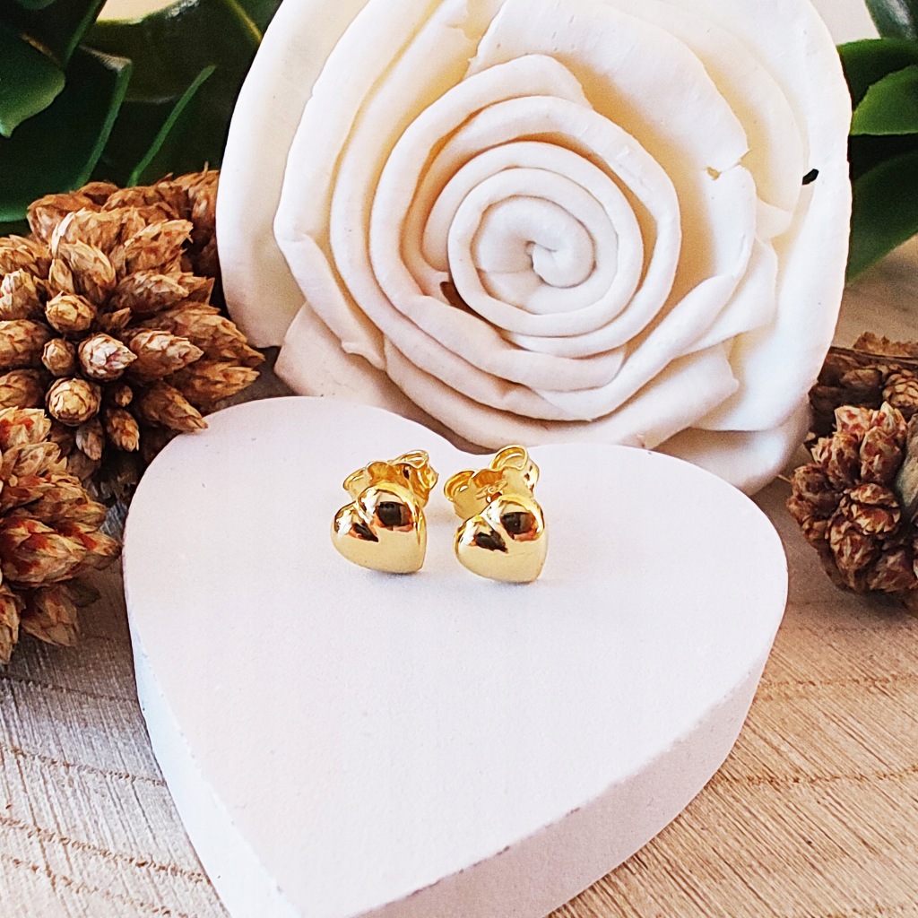 Kolczyki w kształcie serduszka 6 mm długości oraz 6 mm szerokości.