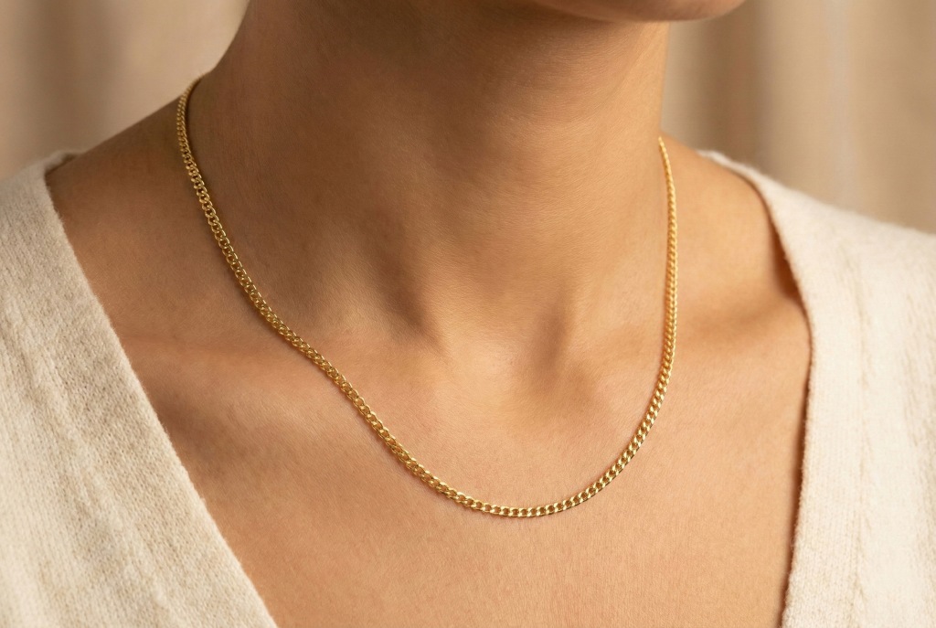 Łańcuszek w całości wykonany ze złota próby 333 barwy żółtej.